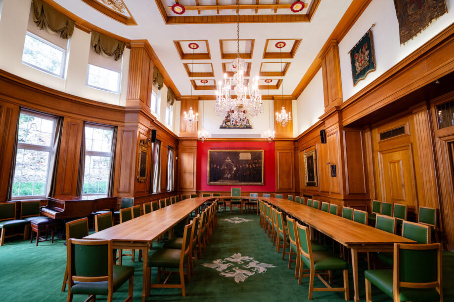 Although a modern building, the Hall is steeped in history and is the home to a range of magnificent paintings including the famous portrait of Henry VIII by Hans Holbein. The Great Hall, in which the painting hangs, is a spacious and gracious room which is flooded with natural daylight and opens onto an outdoor terrace: it is ideal for conferences, dinners or receptions. The adjoining Reception Room is predominantly used for pre-lunch or dinner receptions but can be used as a smaller, more intimate dining area. In addition there are two smaller rooms which are ideal for breakout areas or for use by VIPs.